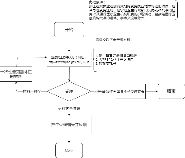 申請(qǐng)護(hù)士執(zhí)業(yè)注冊(cè),應(yīng)當(dāng)向該醫(yī)療機(jī)構(gòu)備案的衛(wèi)生健康局提出申請(qǐng)。衛(wèi)生健康局應(yīng)當(dāng)對(duì)申請(qǐng)人提交的材料進(jìn)行審核、注冊(cè),并發(fā)放《護(hù)士執(zhí)業(yè)證書(shū)》;對(duì)不符合規(guī)定條件的,不予注冊(cè),并書(shū)面說(shuō)明理由。