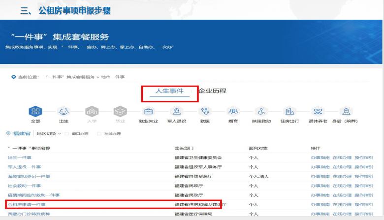 (一)線上辦理:申請可手機端下載公租房APP、閩政通搜索公租房、福建省網上辦事大廳搜索公租房申請一件事或在互聯網政務端申請。