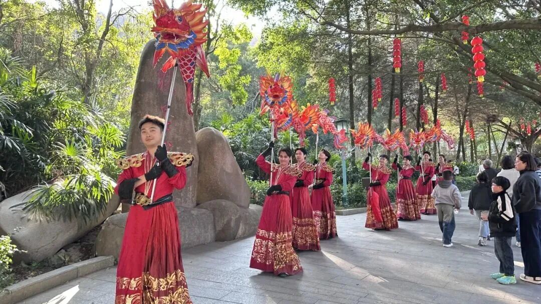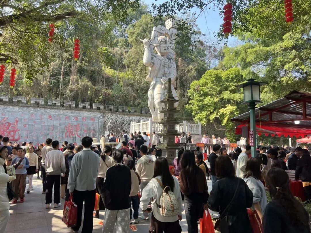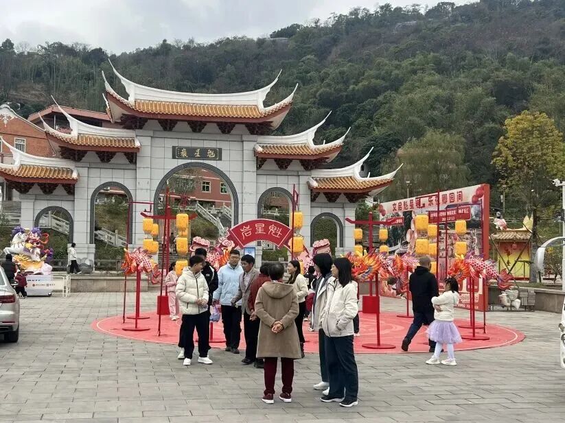 新春的魁星巖年味濃郁、文韻盎然,全域紅燈籠高掛,魁星廣場和百魁廣場上鰲魚燈陣、魁星燈陣璀璨奪目,鰲魚燈陣巡游舞蹈靈動上演,閩南新春氛圍感拉滿。